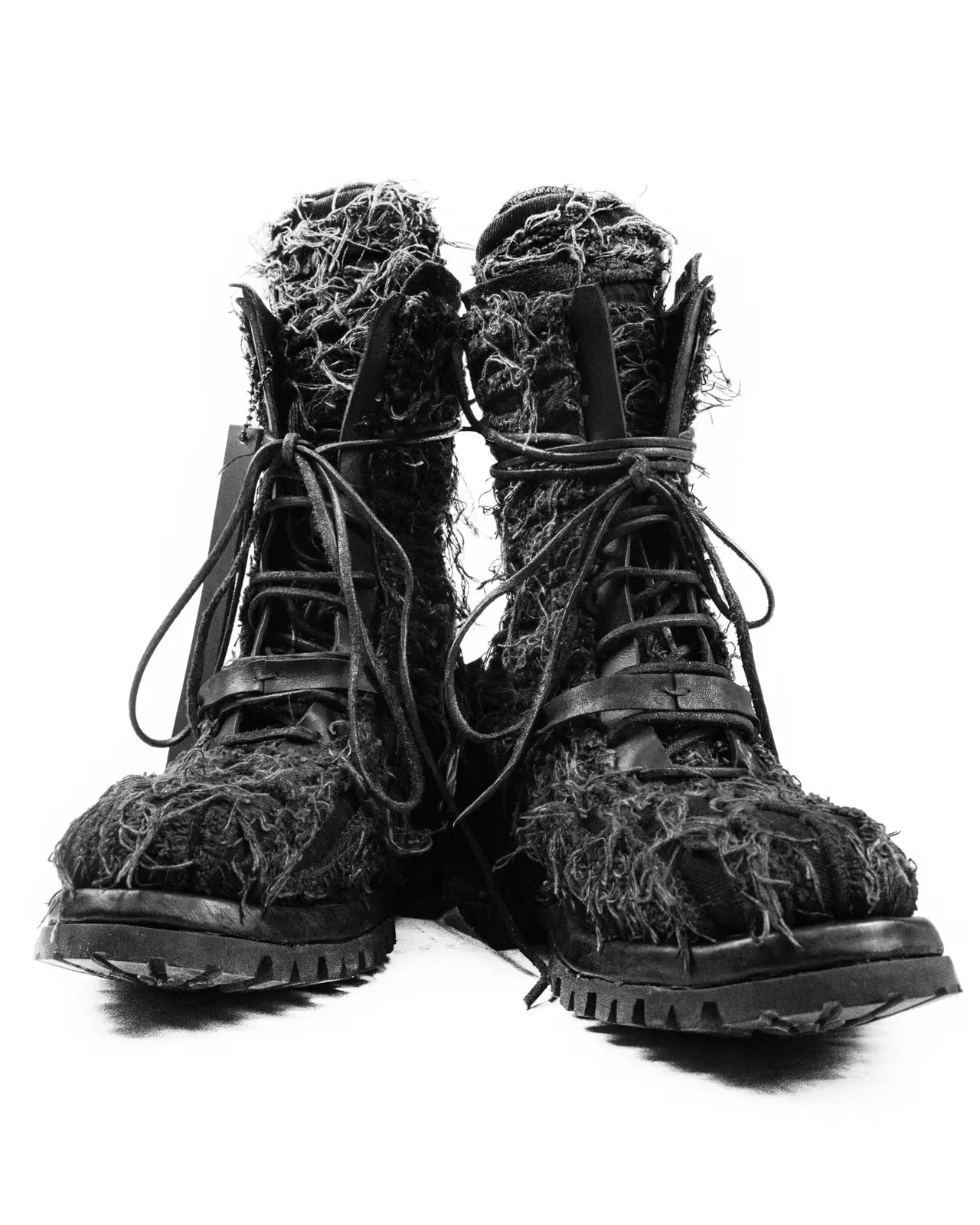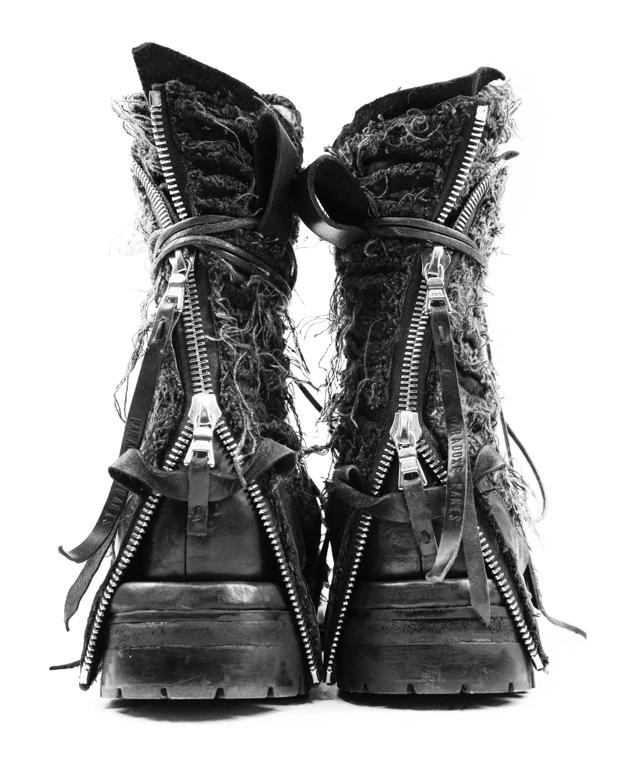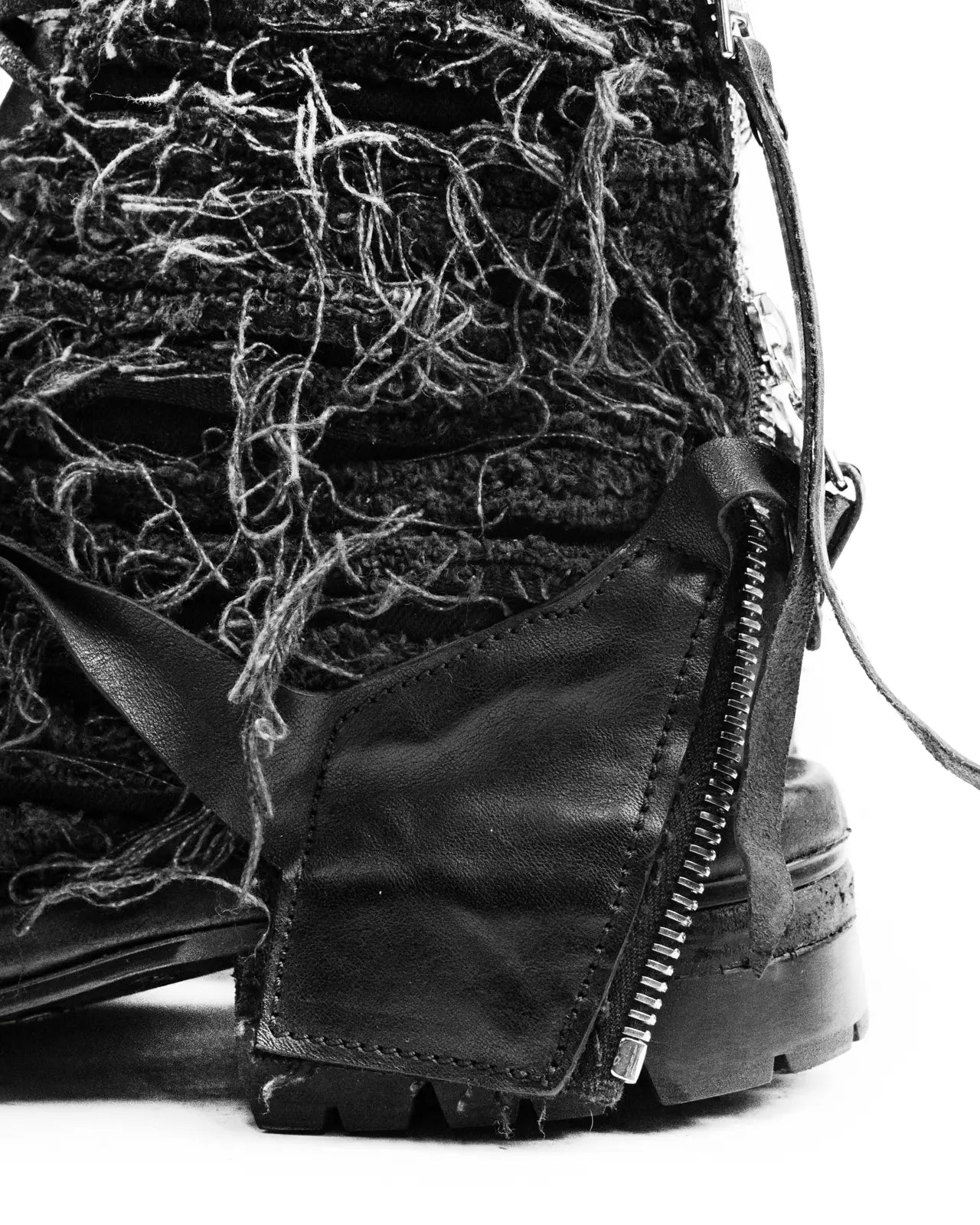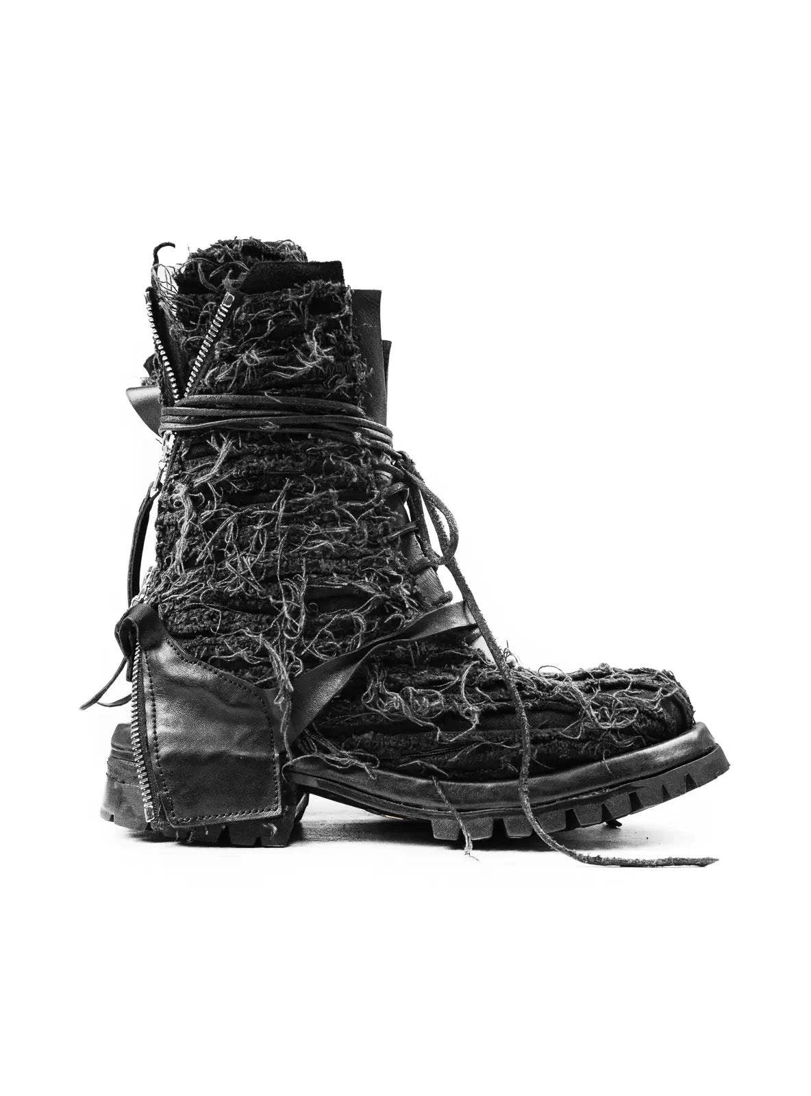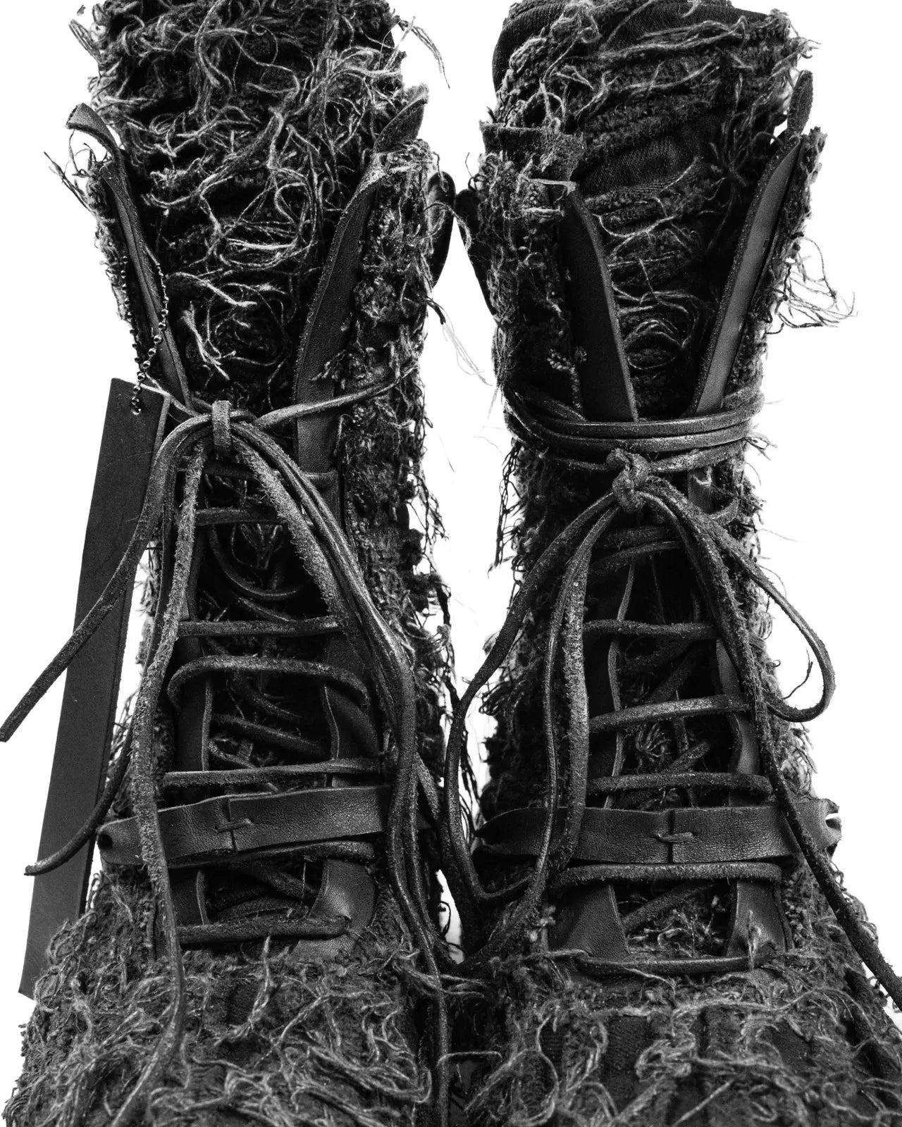 A seamless fusion of innovation and tradition, this boot showcases our exclusive HAIRY finish, where textured denim elegantly wraps its silhouette. Combined with premium full-grain cowhide from Italy’s finest tanneries, it exudes both character and refinement. The lambskin leather lining ensures exceptional comfort, while the Vibram sole offers lightness and durability. Finished with a double RIRI M8 zipper, a leather pull tab, and refined leather laces, this boot is a true expression of modern sophistication and artisanal excellence.