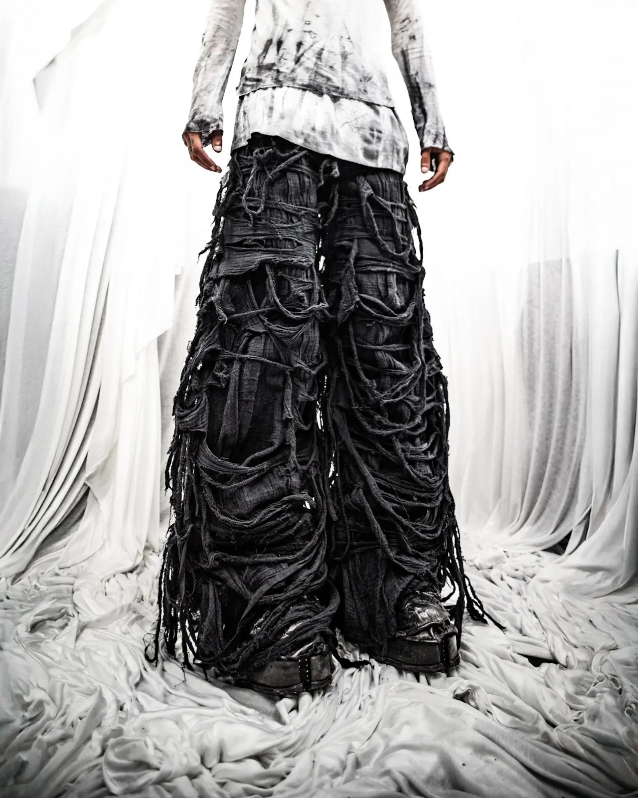 The Big Baggy Reaper Black Denim jeans are an exciting blend of style and comfort. Crafted in our Paris atelier from premium black denim and four-ply cotton fabric, this piece boasts a distinct, textured and artfully distressed design.