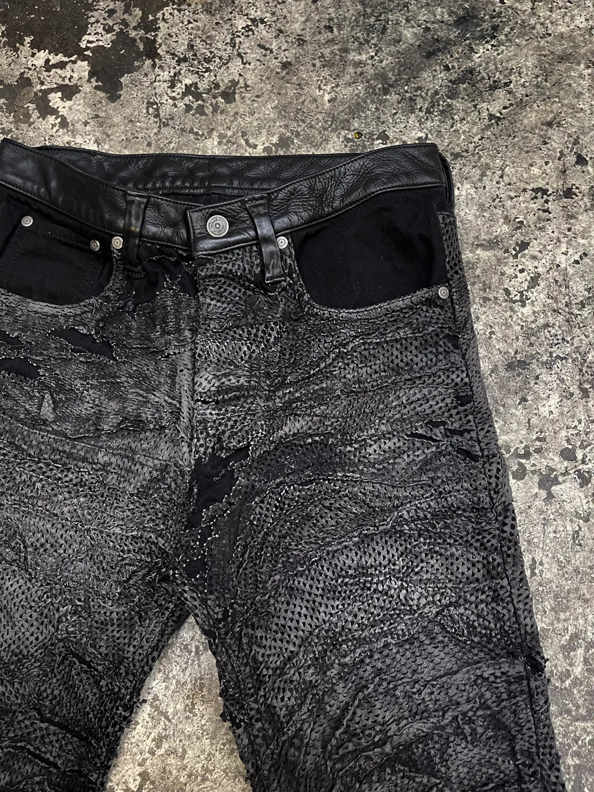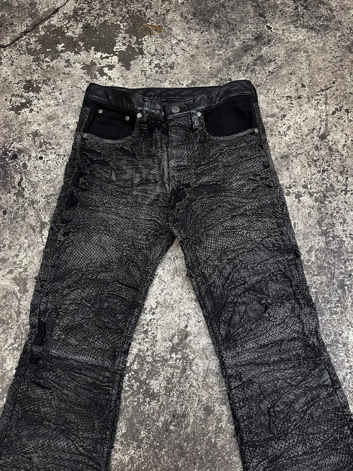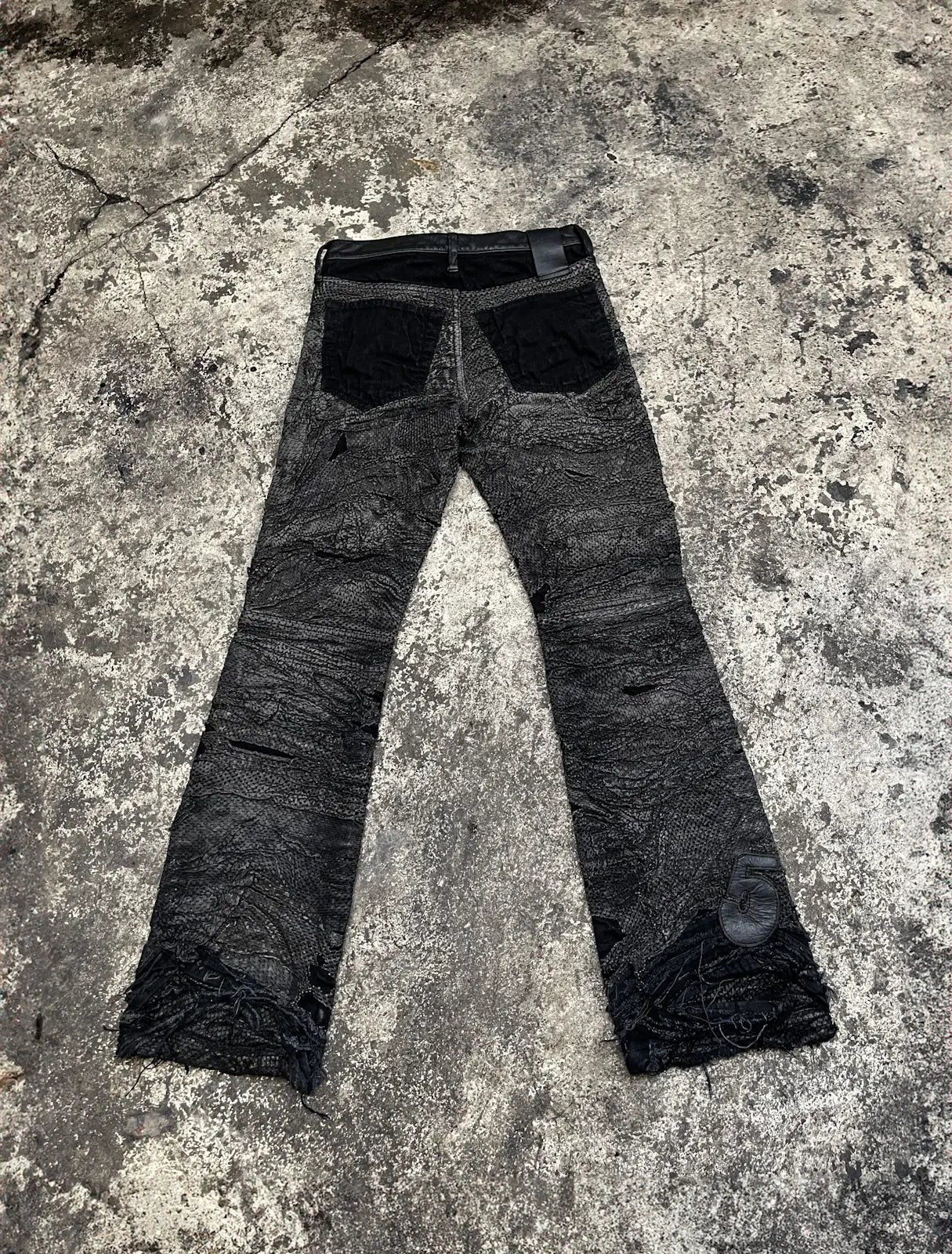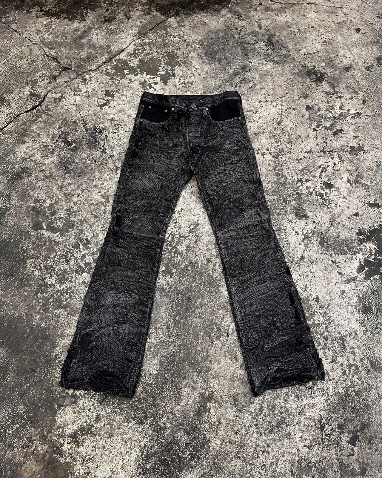 The LAYERED LEATHER PERFORATED MAXIMUS is more than just a pair of pants—it is a wearable work of art, designed for those who seek distinction and bold expression in their wardrobe.