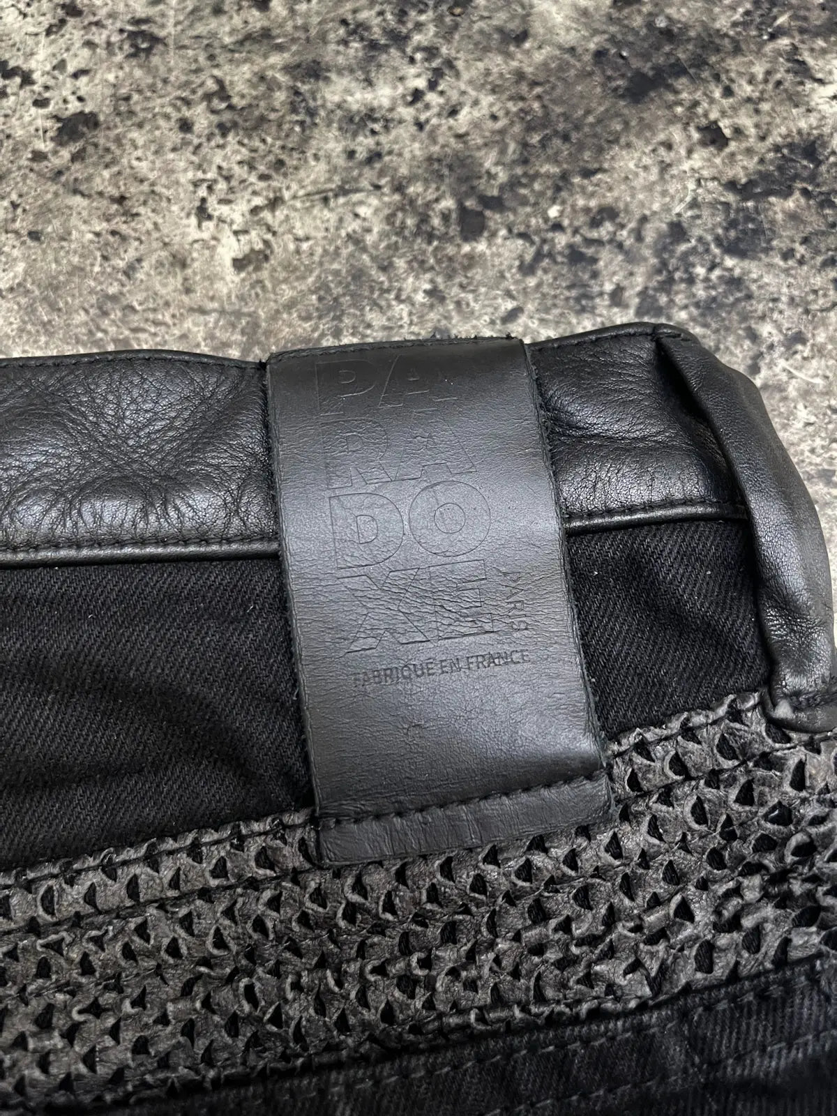 Entirely handcrafted in our Parisian atelier, the LAYERED LEATHER PERFORATED MAXIMUS exemplifies Paradoxe Paris’ commitment to exceptional craftsmanship and innovation. This design offers a bold reinterpretation of the classic bootcut silhouette, blending the rugged allure of denim with the sophistication of perforated leather.