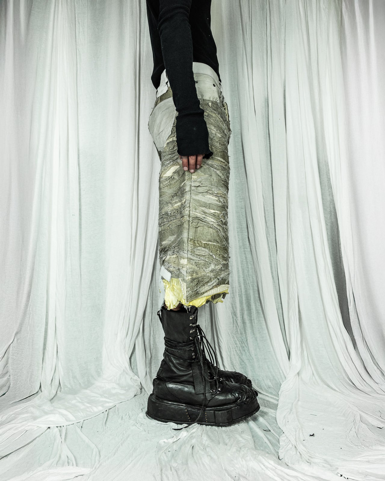 An emblem of raw sophistication, the Layered Leather Shorts are meticulously handcrafted in our Parisian atelier. Made from supple, premium leather, their voluminous structure is shaped by an intricate layering technique that gives depth, texture, and a singular tactile presence. Each fold and seam is deliberately composed, resulting in a sculptural silhouette with organic movement. No two pairs are identical, each piece is a testament to the unique and artisanal nature of Paradoxe Paris’ craftsmanship.
