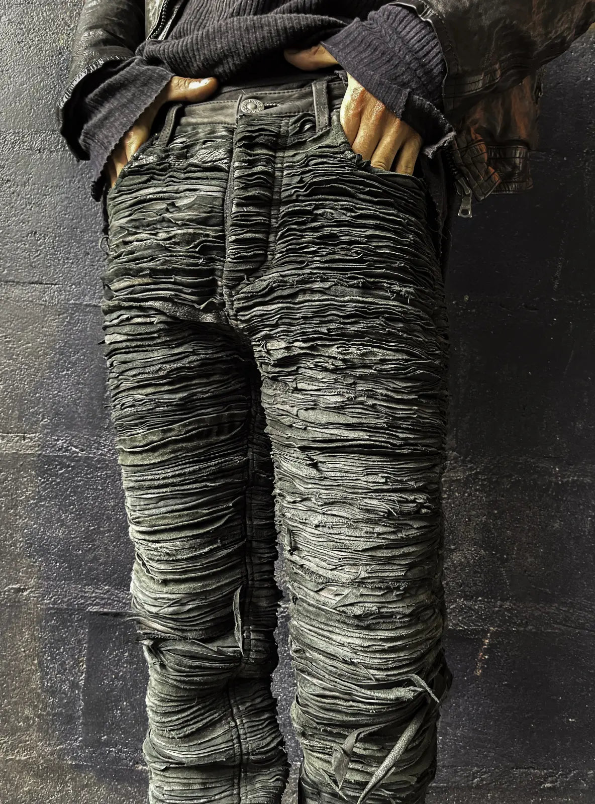 The Mille-feuilles de Cuir is a true emodiment of Paradoxe's unwavering commitment to craftsmanship and the introductory piece to our forthcoming colletion. The perfect amalgamation of our two emblematic materials, denim and leather, these pants represent our resolute passion for fabric exploration.